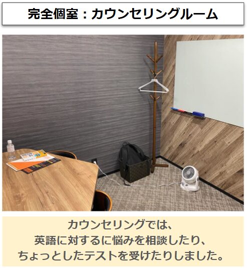 具体的には無料カウンセリングで口頭によるかんたんなテストを行います。(だいたい20分程度)そこでカウンセラーが本人の英語力を診断します。病院に行って診断を受けるようなイメージです。