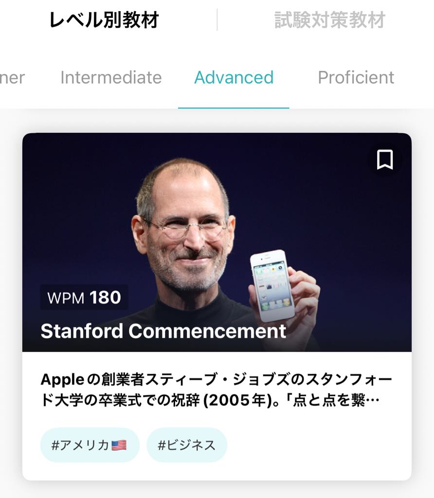 ビジネス・日常会話・試験対策など、ジャンルも豊富スティーブ・ジョブズなど著名人のスピーチも教材に!